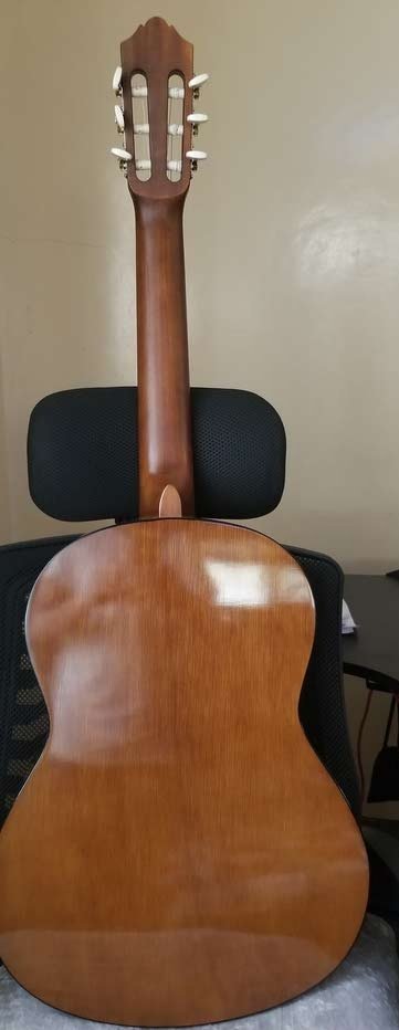 يلاحظ علامات سوداء متفرقة تميل إلى الأخضر الغامق على الأوتار المعدنية الثلاثة وهي تقريبا علامات تأكسد طفيفة طبيعية ولا تأثر في الصوت أو حالة الجيتار.